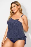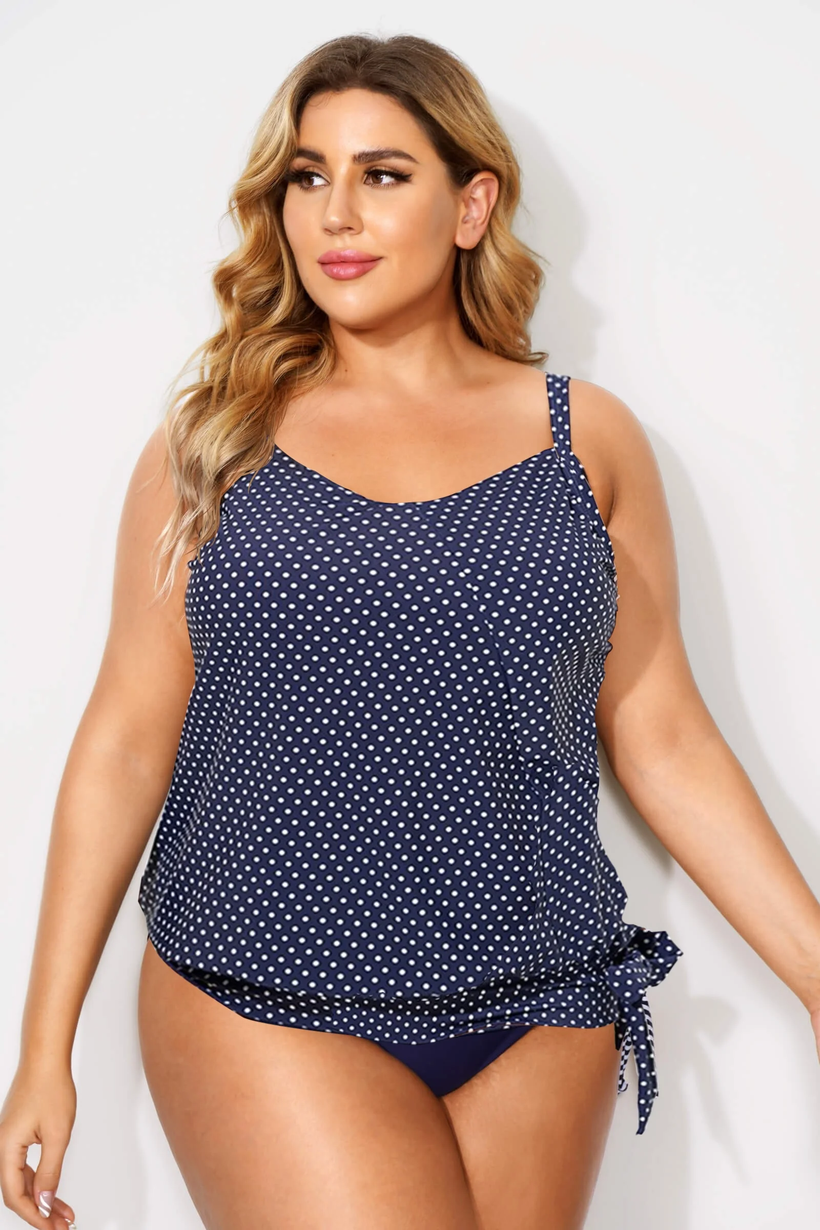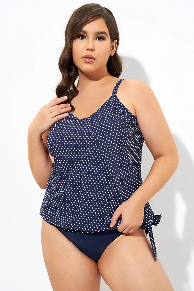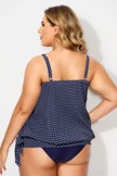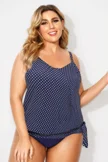 Navy Pindot Women Side Tie Round Neck Tankini Top - PremCurve