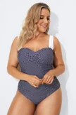 Plus Size Round Neck Black Patchwork Bikini Top