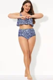 Blue Shirred High Waist Swim Brief For Lady