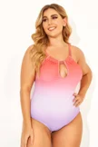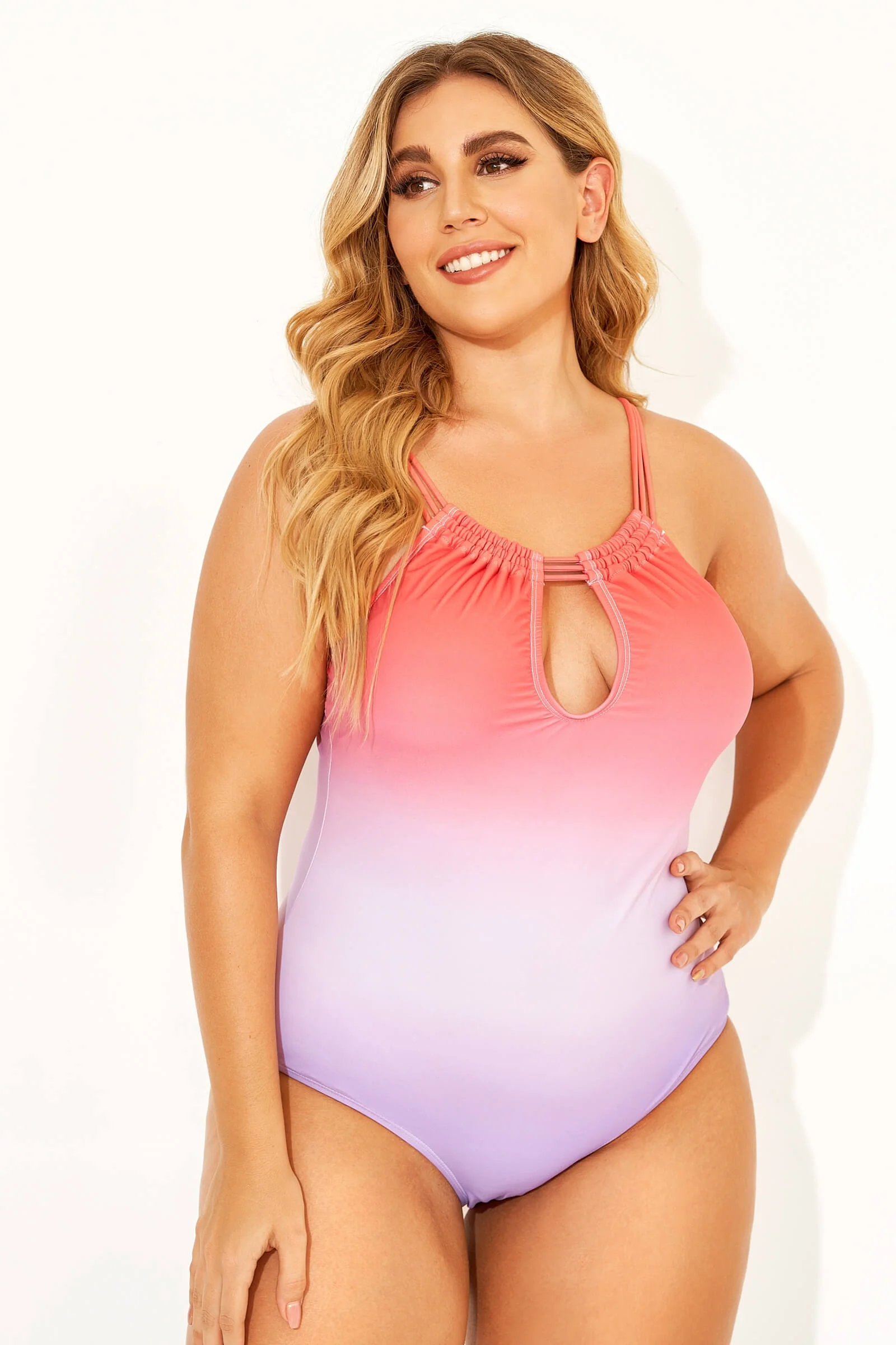 Ombre Color Keyhole Halter Top One Piece Swimsuits - PremCurve