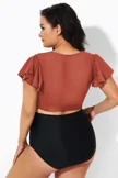 Orange Flutter Sleeve Tie Front Swim Bikini Top - PremCurve