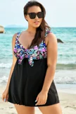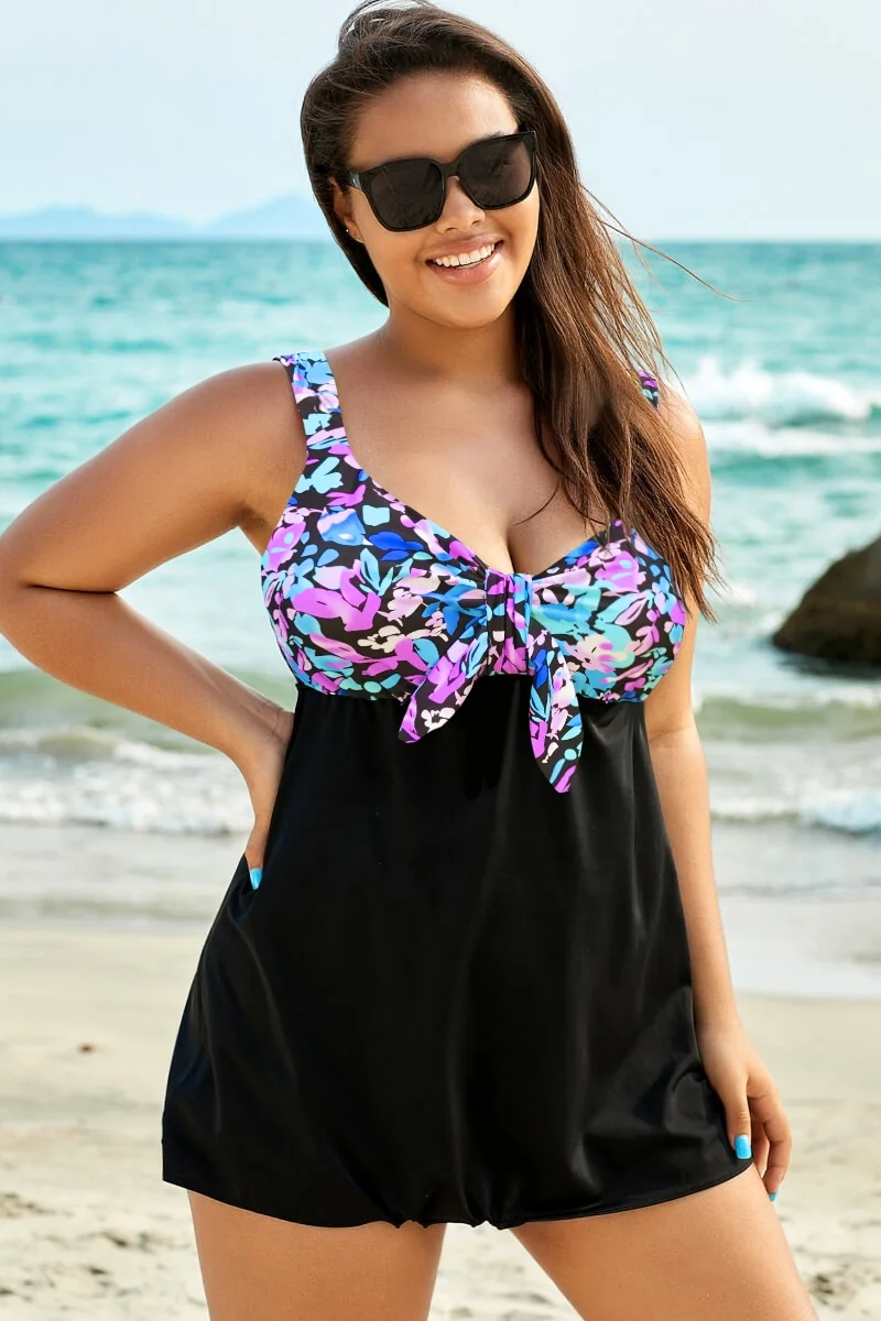 Pastel Floral Print Tie Front Tummy Control Swimdress  - PremCurve