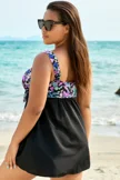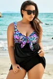 Plus Size Round Neck Black Patchwork Bikini Top