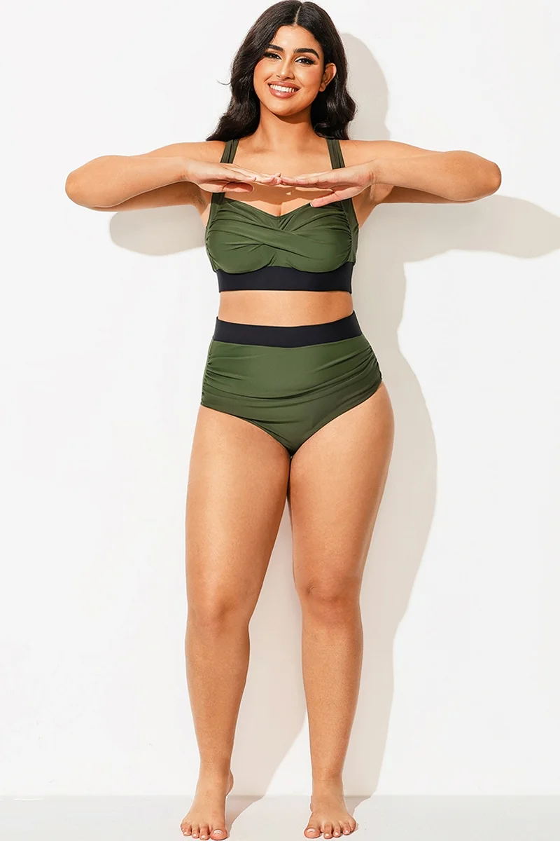 Twist Front Patchwork Colorblock Bikini Top