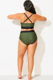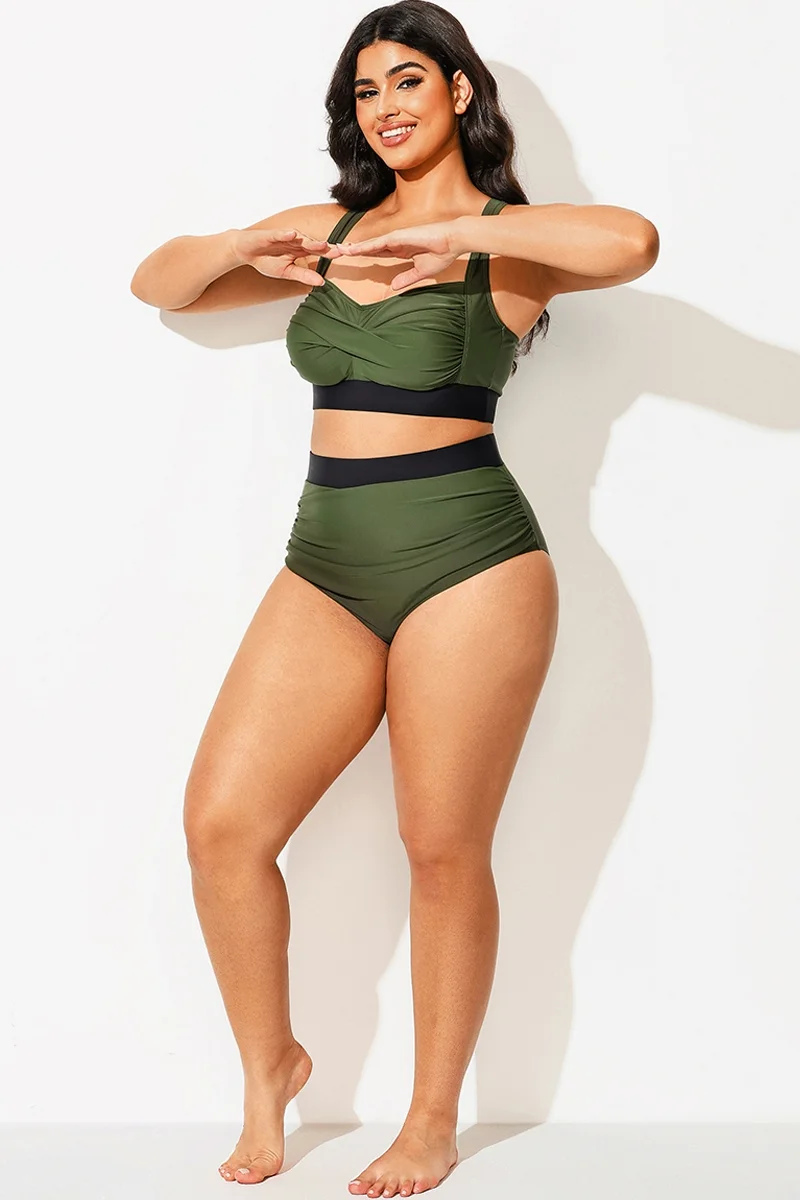 Green Check Twist Front One Piece Swimsuit