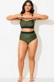 Blue Shirred High Waist Swim Brief For Lady
