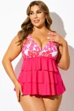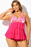 Golden Floral Print Racerback Blouson Tankini Top