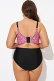 Plus Size Round Neck Black Patchwork Bikini Top