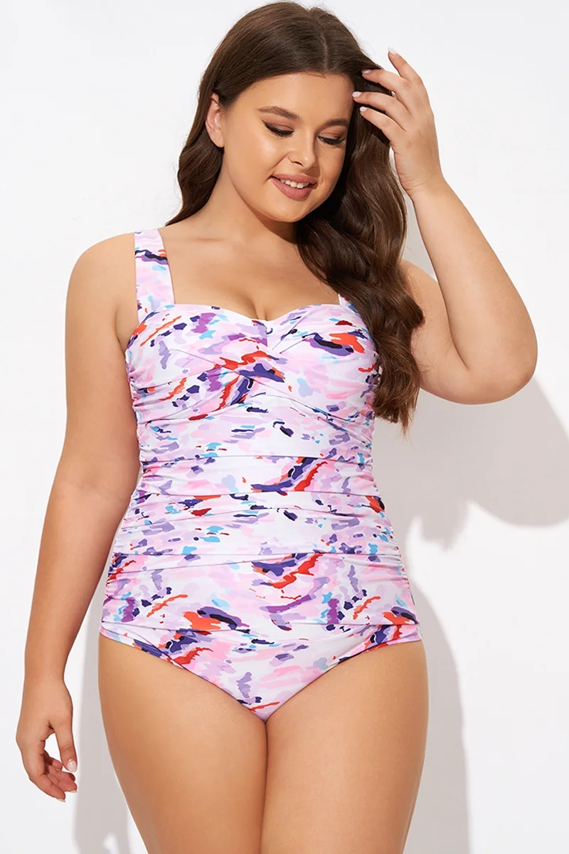 Pink Sweetheart Neckline Tie Dye One Piece Swimsuit - PremCurve