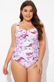 Pink Sweetheart Neckline Tie Dye One Piece Swimsuit