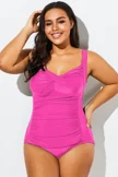 Pink Vintage Push Up One Piece Swimsuit - PremCurve