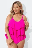 Pink Vintage Round Neck Women Tankini Top  - PremCurve