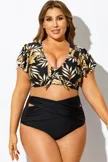 Plant Print Flutter-Sleeve Swim Bikini Top
