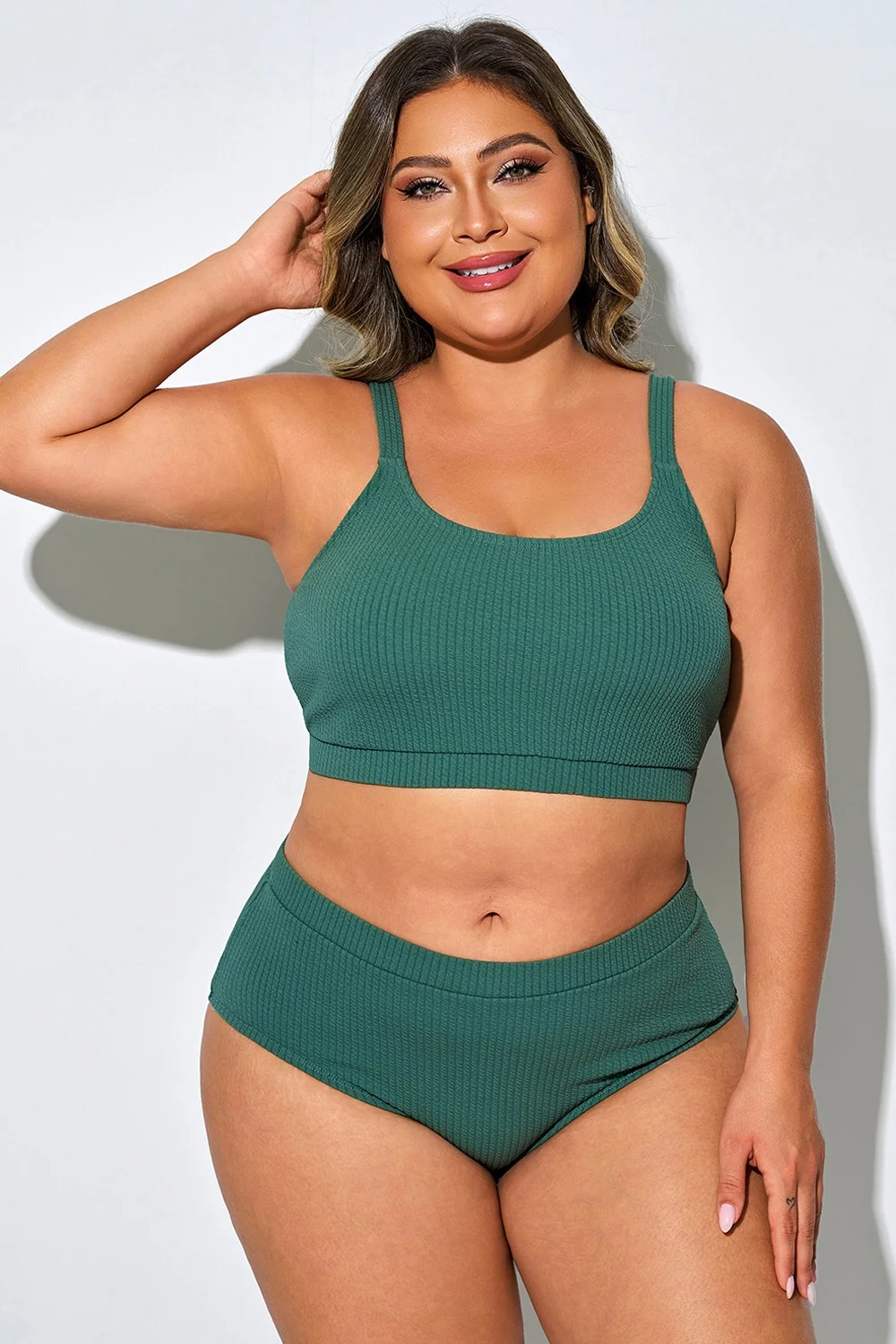 Plus Size Basic Dark Green Bikini Top