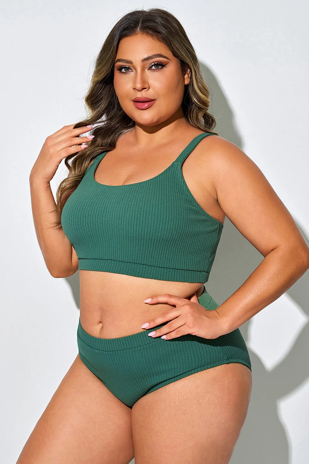 Plus Size Basic Dark Green Bikini Top - PremCurve
