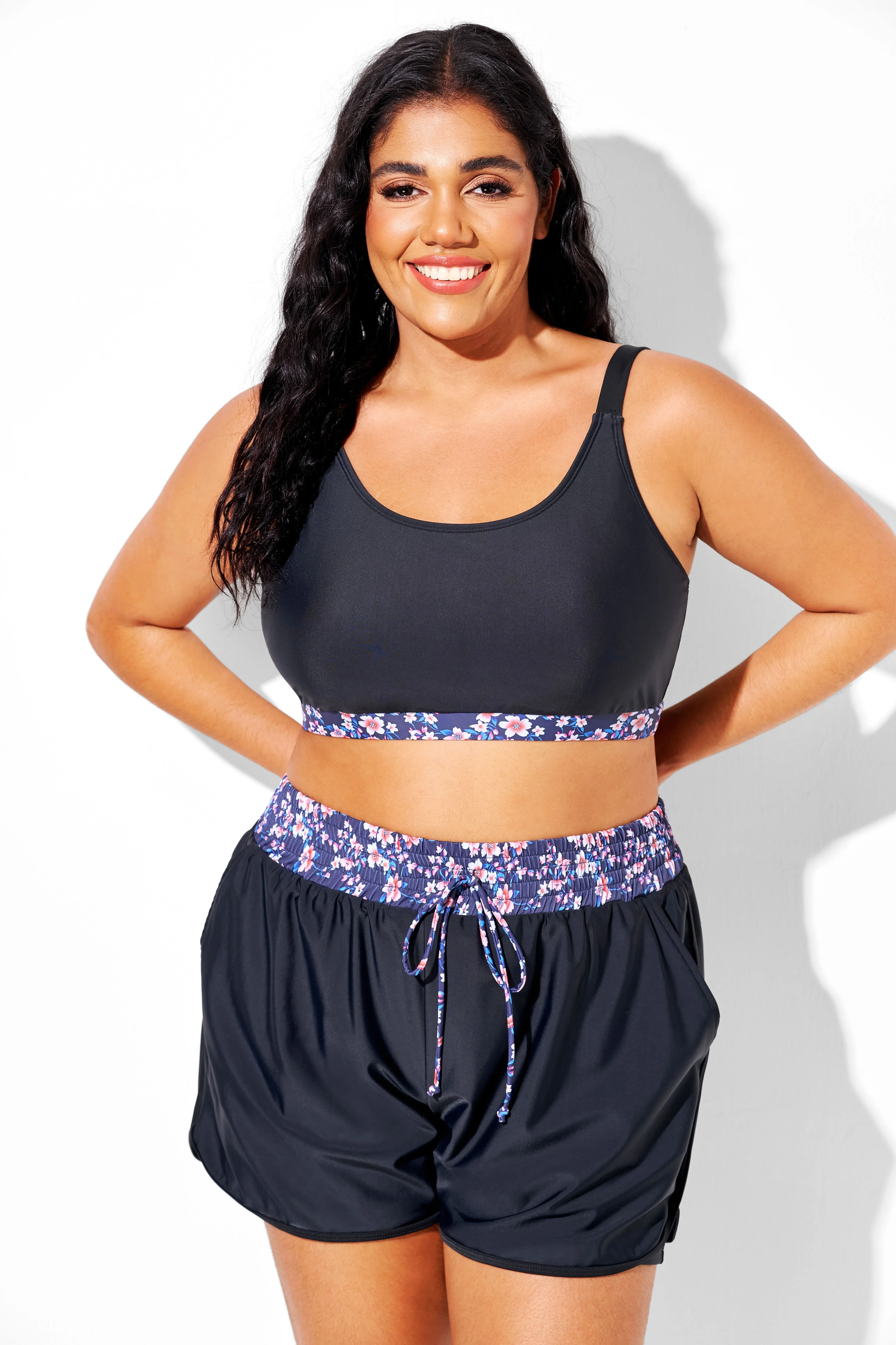 Plus Size Black Mid Waist Women Shorts