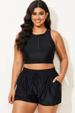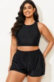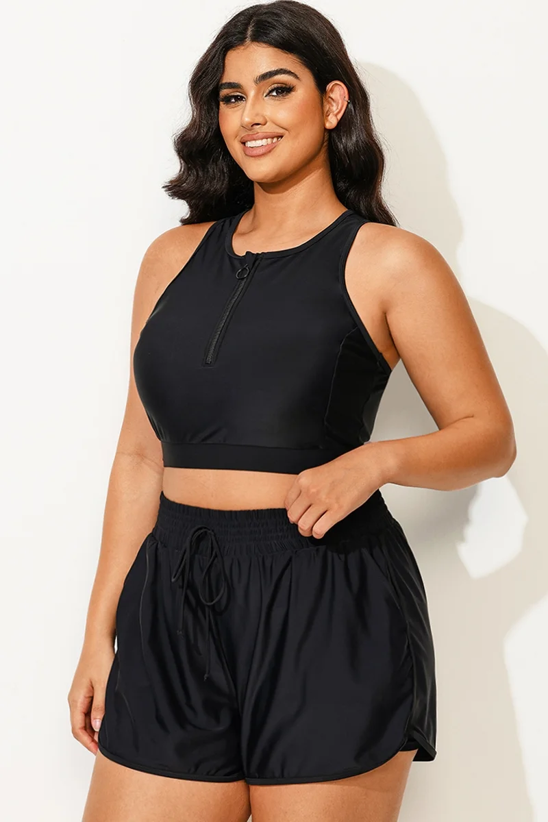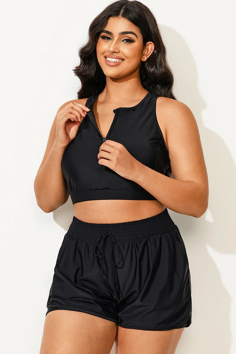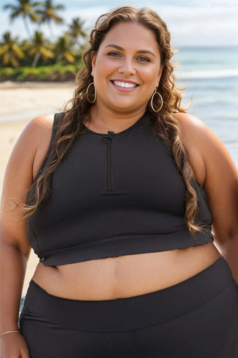 Plus Size Black Half Zip Crop Bikini Top - PremCurve