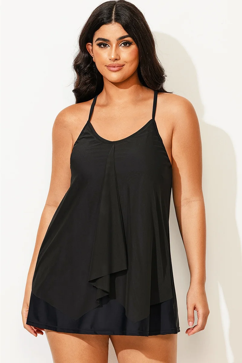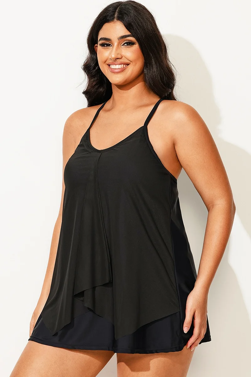 Plus Size Black Longer Length Mesh Tankini Top - PremCurve