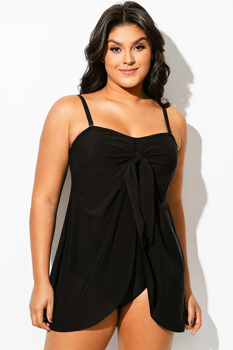Plus Size Black Mesh Draped One Piece Swimsuit - PremCurve