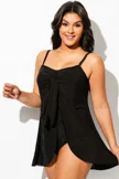 Plus Size Black Mesh Draped One Piece Swimsuit