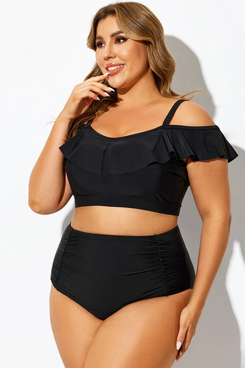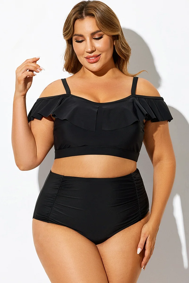 Plus Size Black Off Shoulder Bikini Top - PremCurve