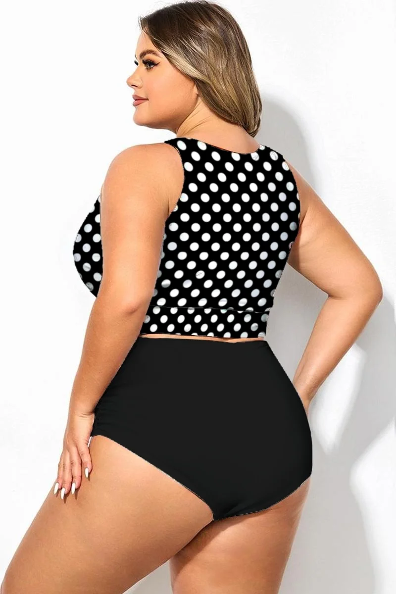 Plus Size Black Polka Dot Knotted Crop Bikini Top - PremCurve