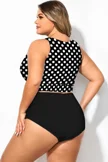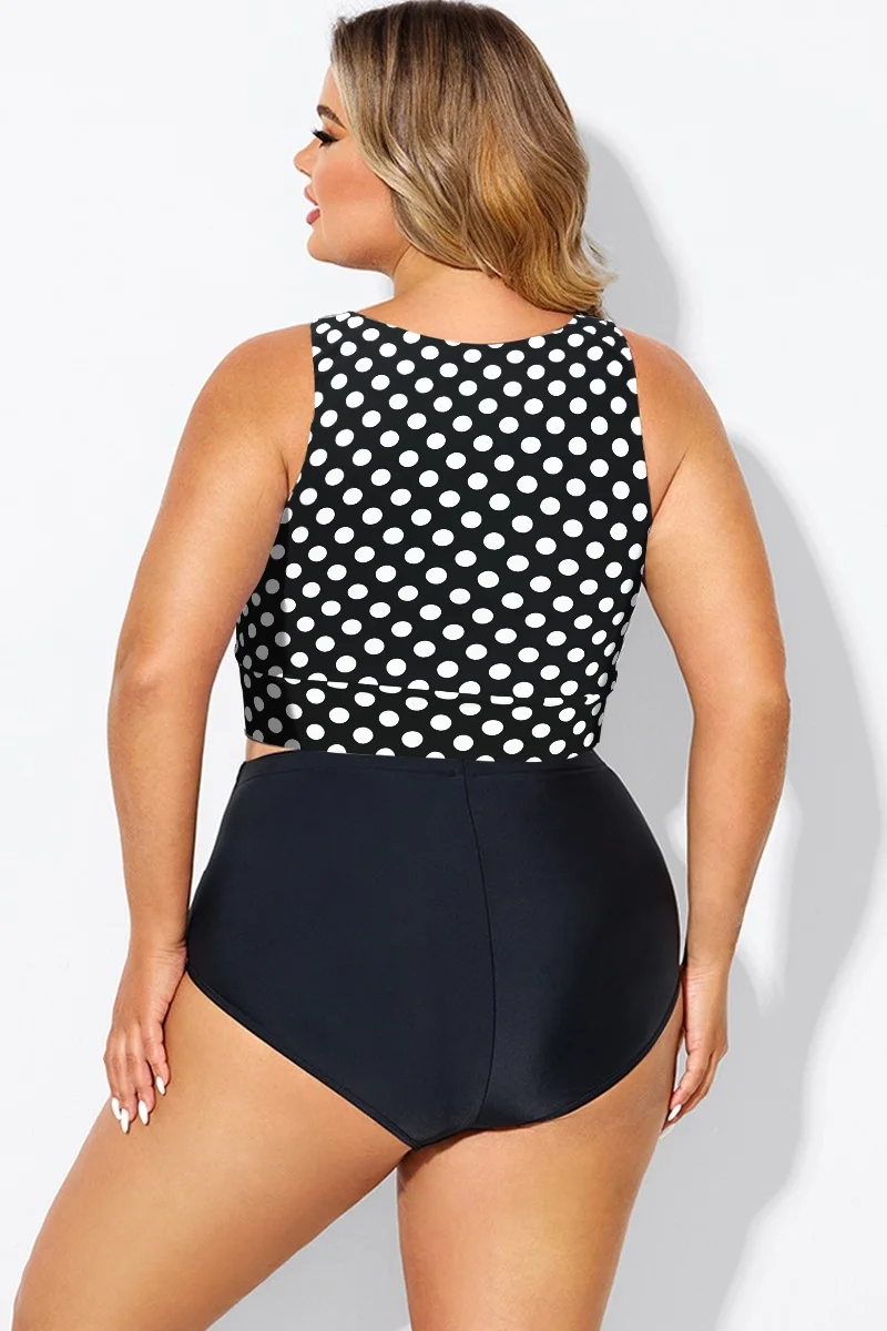 Plus Size Black Polka Dot Knotted Crop Bikini Top
