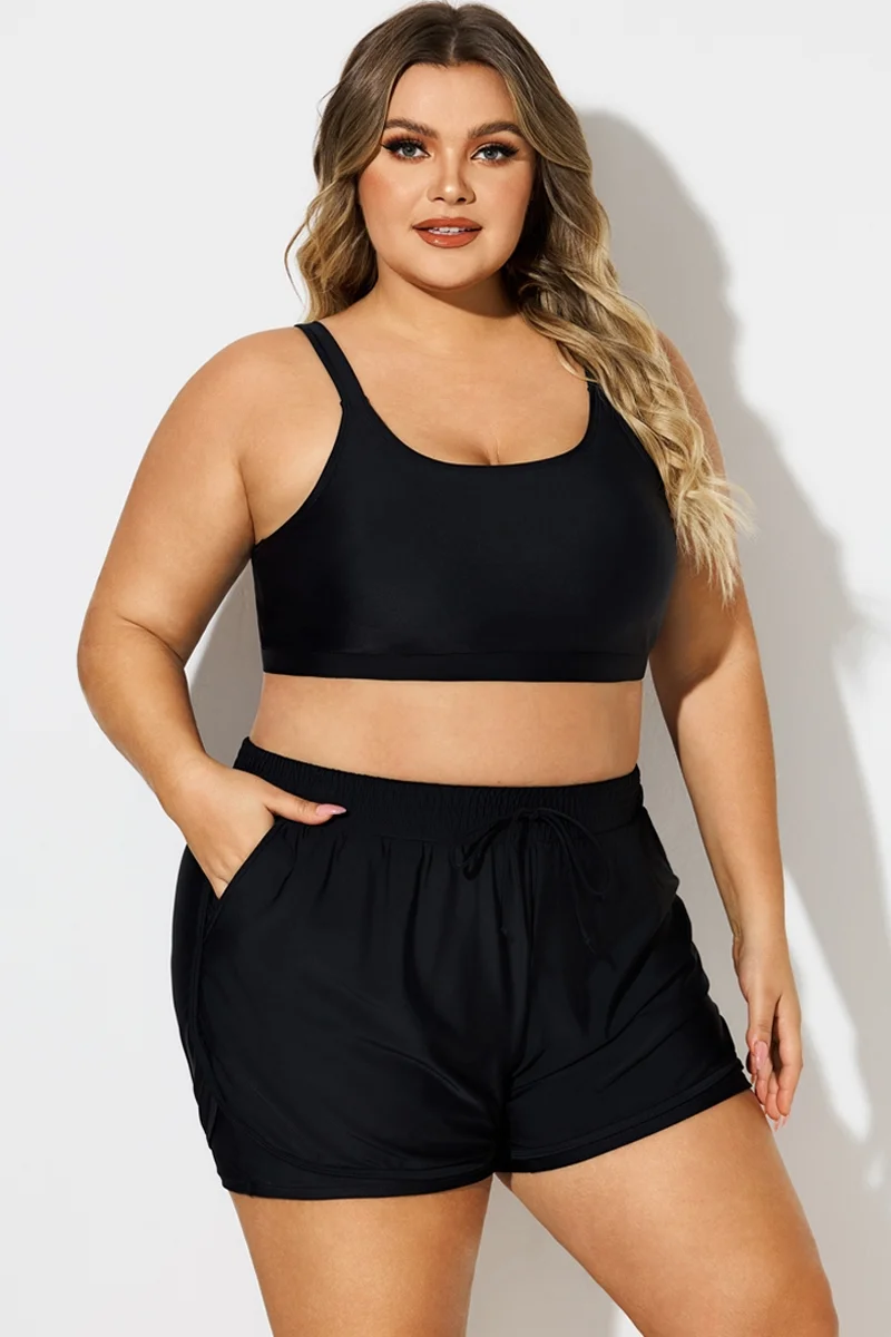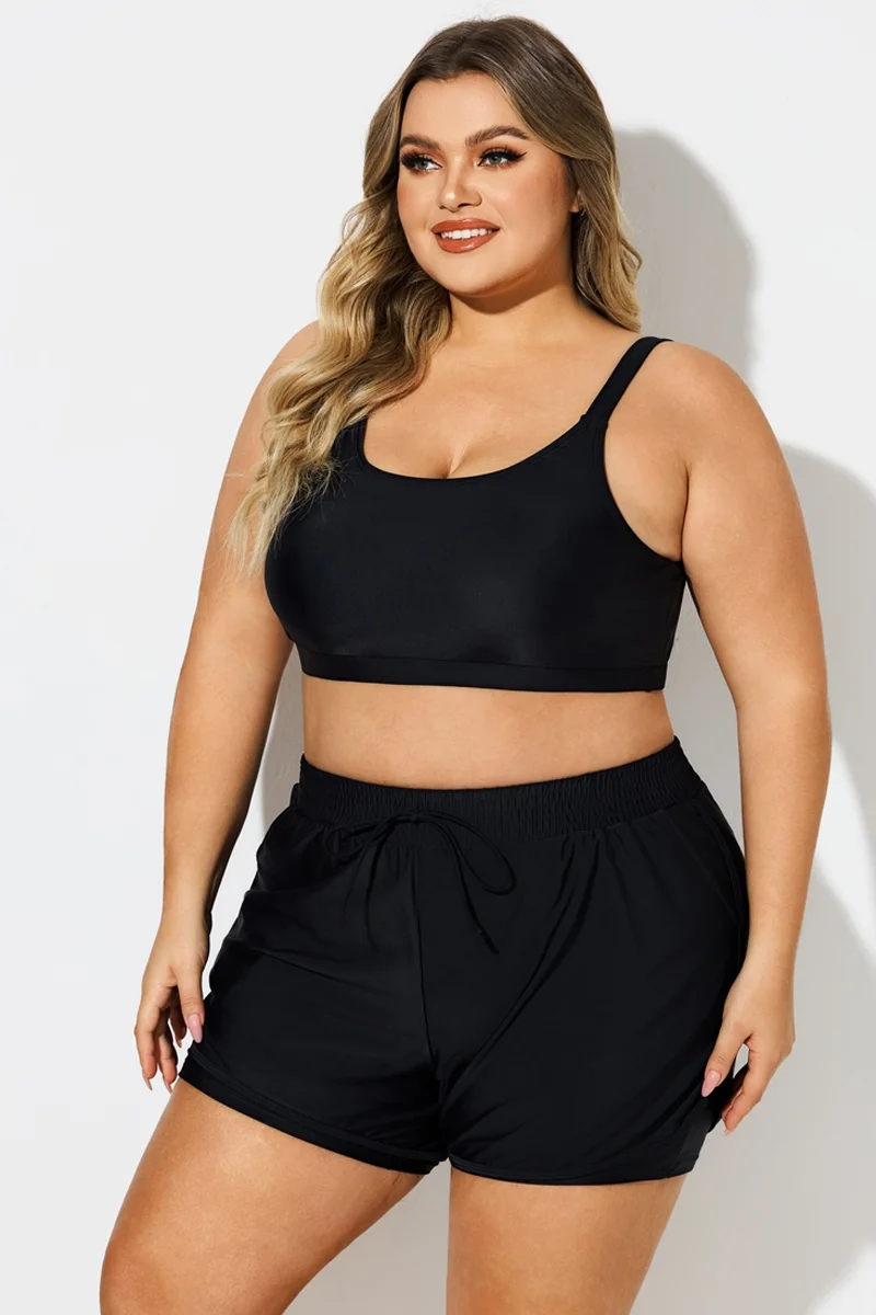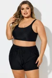 Plus Size Black Round Neck Bikini Top