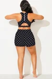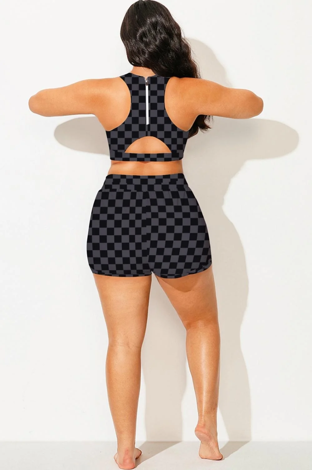 Plus Size Black Squares Mid Waist Women Shorts - PremCurve