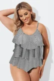 Plus Size Black Striped Layered Tankini Top - PremCurve