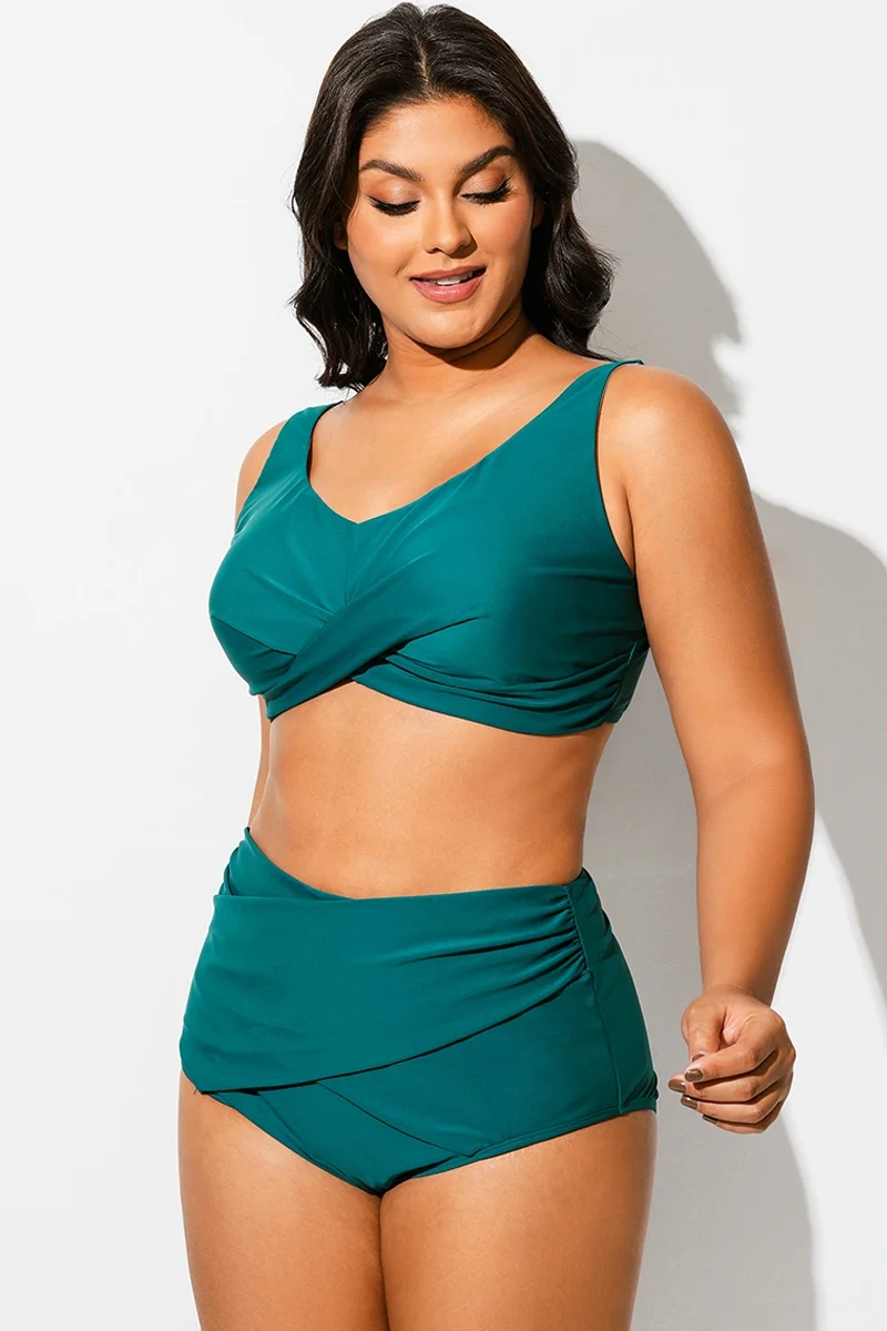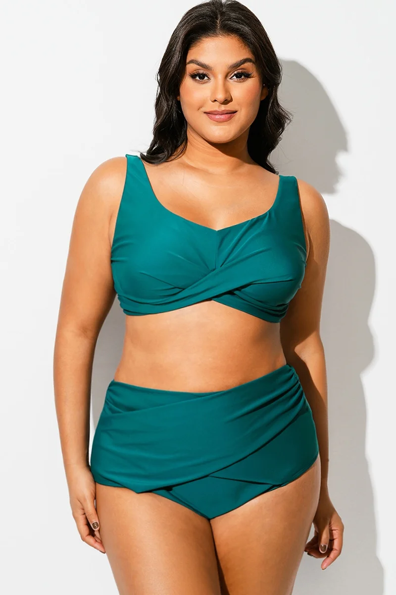 Plus Size Black Twist Front Bikini Top - PremCurve