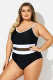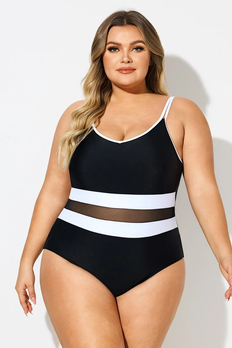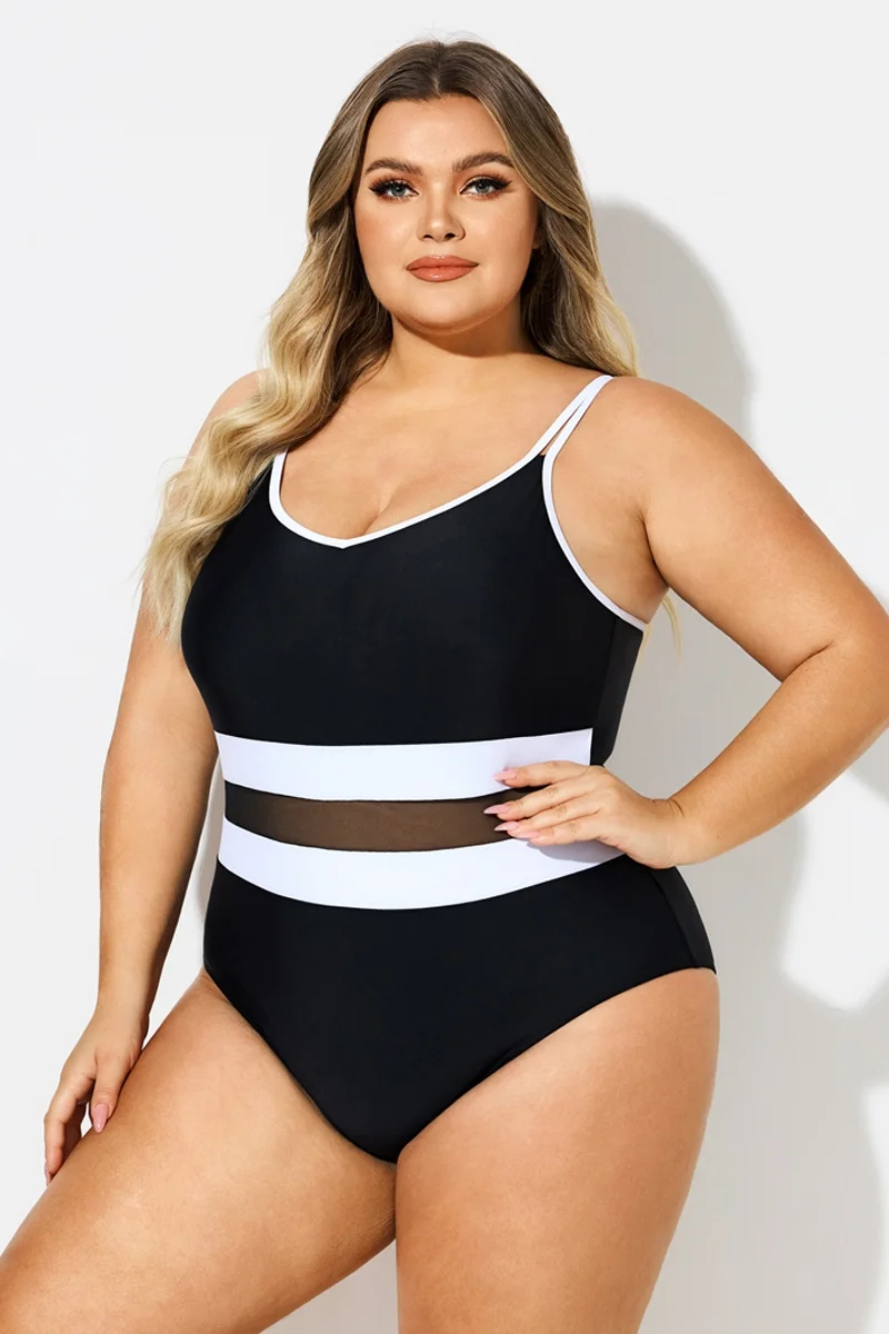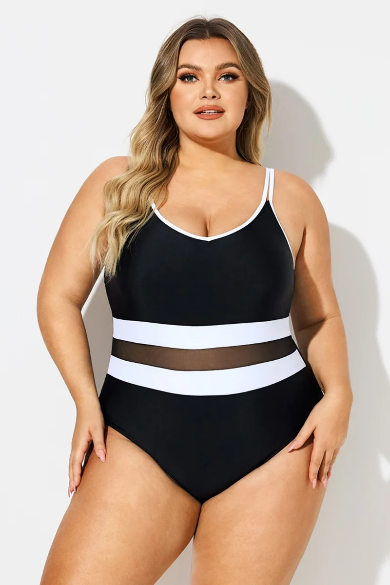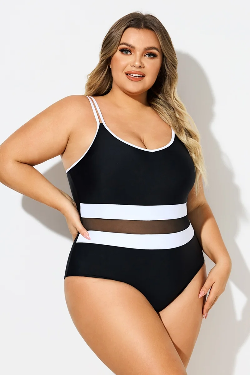 Plus Size Black & White Mesh One Piece Swimsuit - PremCurve