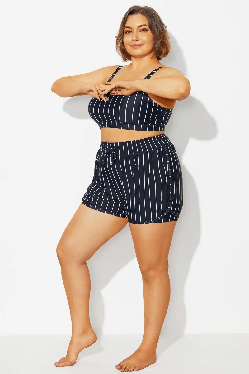 Plus Size Black & White Pinstripe Shorts - PremCurve