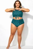Plus Size Blue Check High Waisted Bottom - PremCurve
