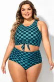 Plus Size Blue Check Knotted Crop Bikini Top