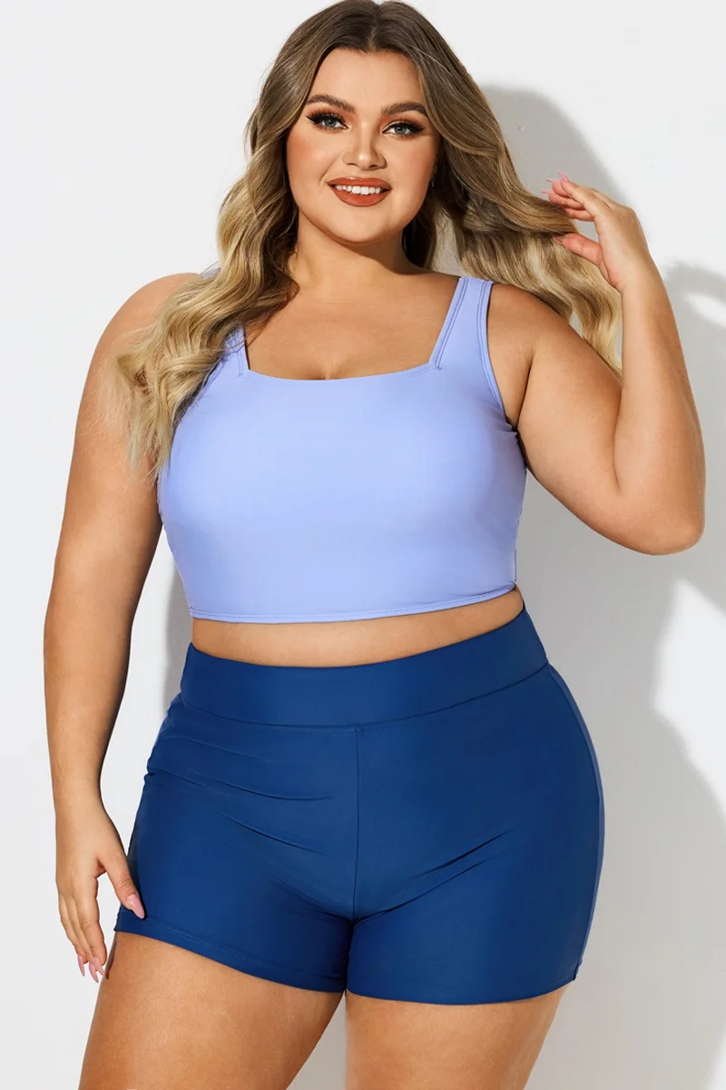 Plus Size Blue Square Neck Bikini Top - PremCurve