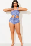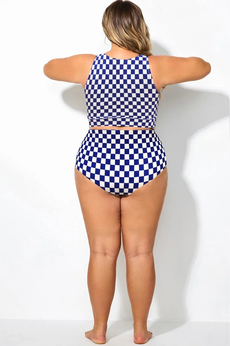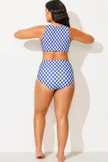 Plus Size Blue & White Check High Waisted Bottom - PremCurve