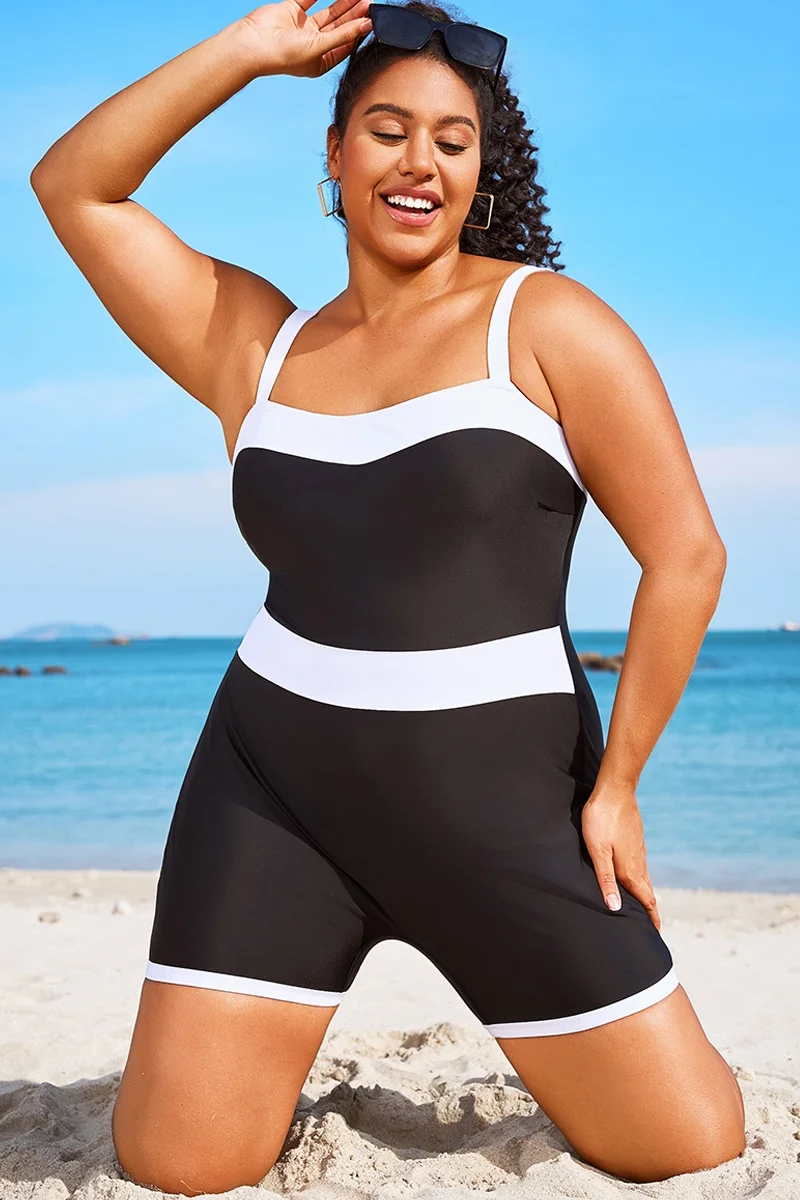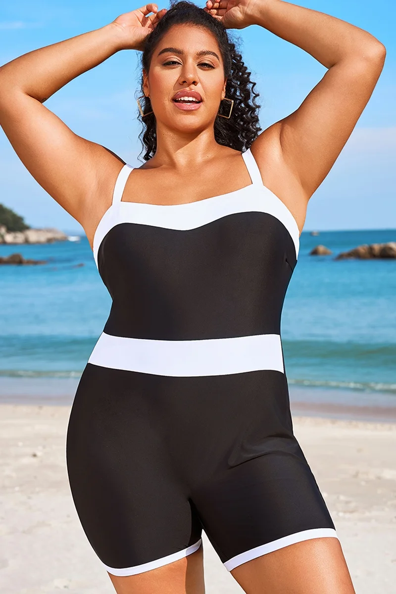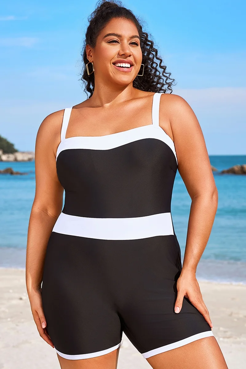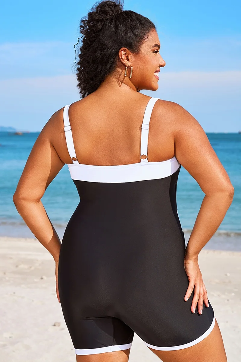 Plus Size Colorblock Black & White One Piece Swimsuit - PremCurve