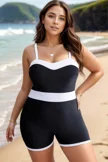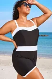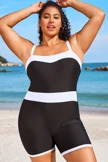 Plus Size Colorblock Black & White One Piece Swimsuit