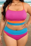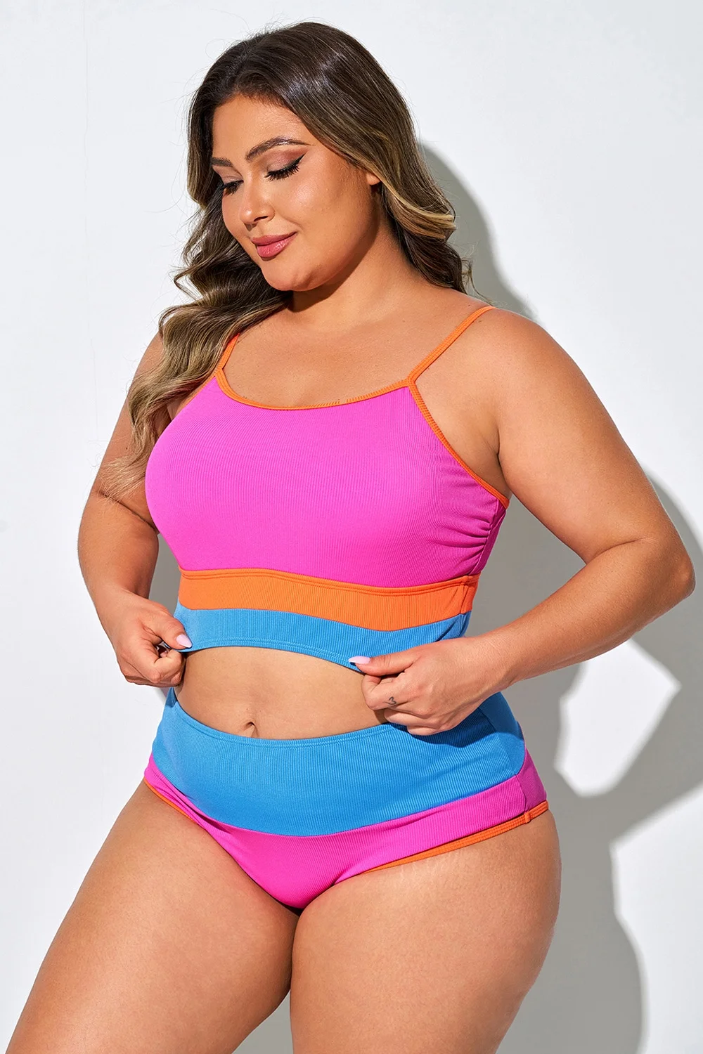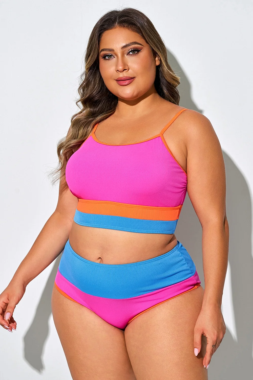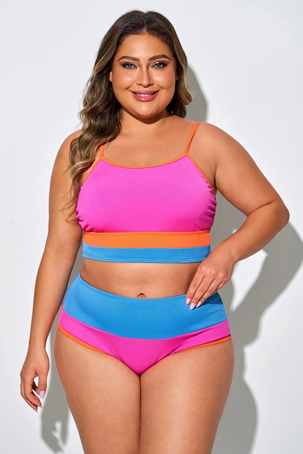 Plus Size Colorblock Cami Crop Casual Bikini Top - PremCurve