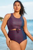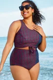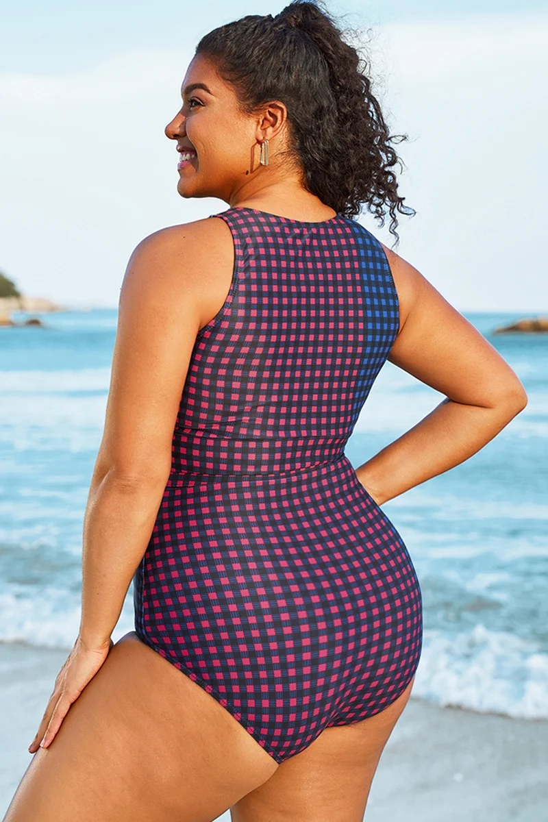 Green Check Twist Front One Piece Swimsuit