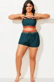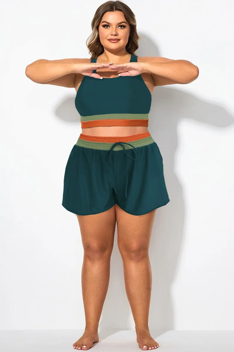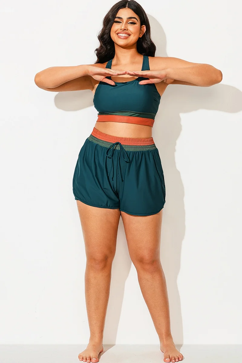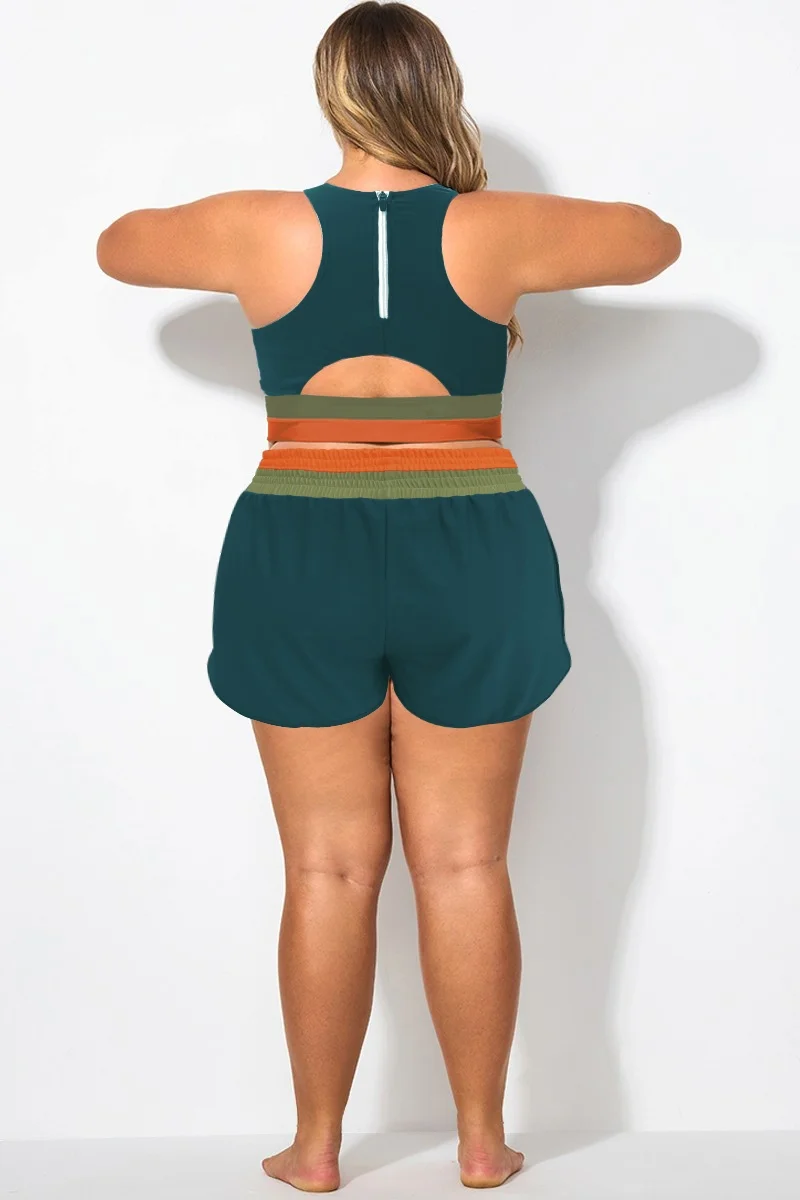 Plus Size Colorblock Patchwork Mid Waist Women Shorts - PremCurve