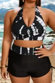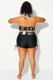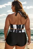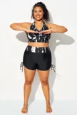 Plus Size Round Neck Black Patchwork Bikini Top