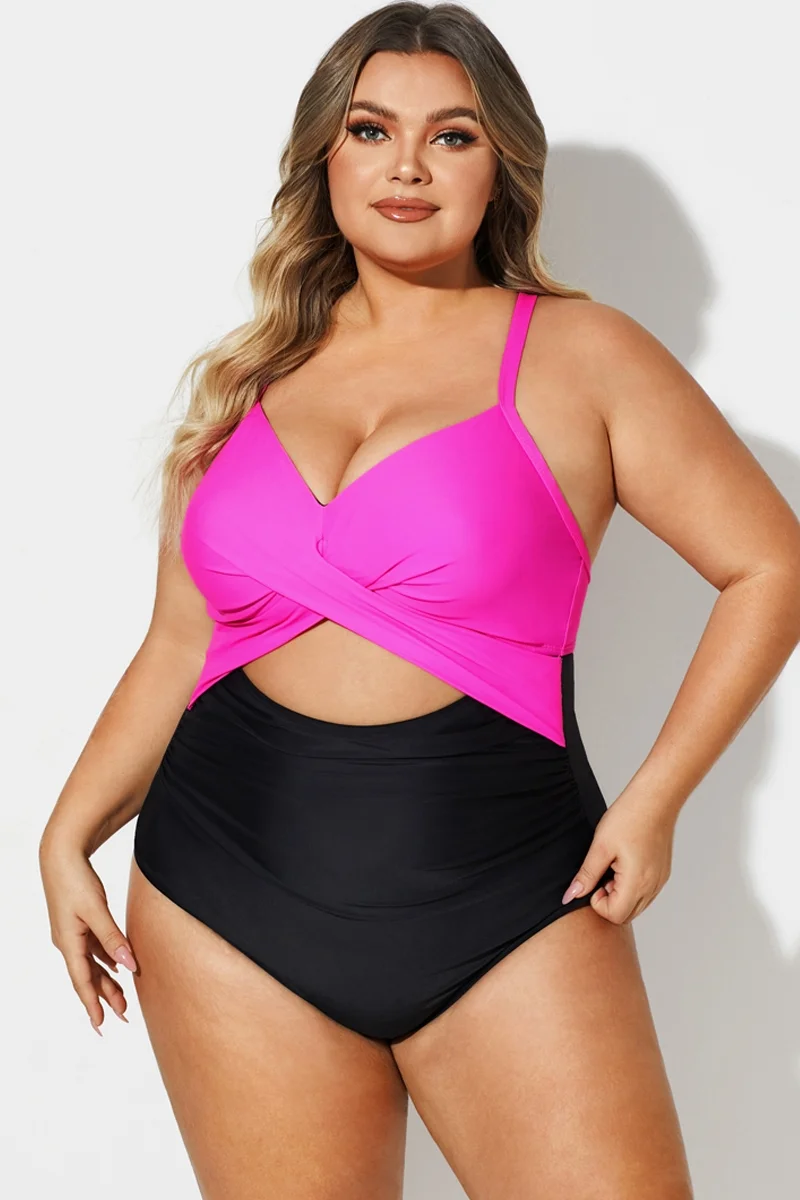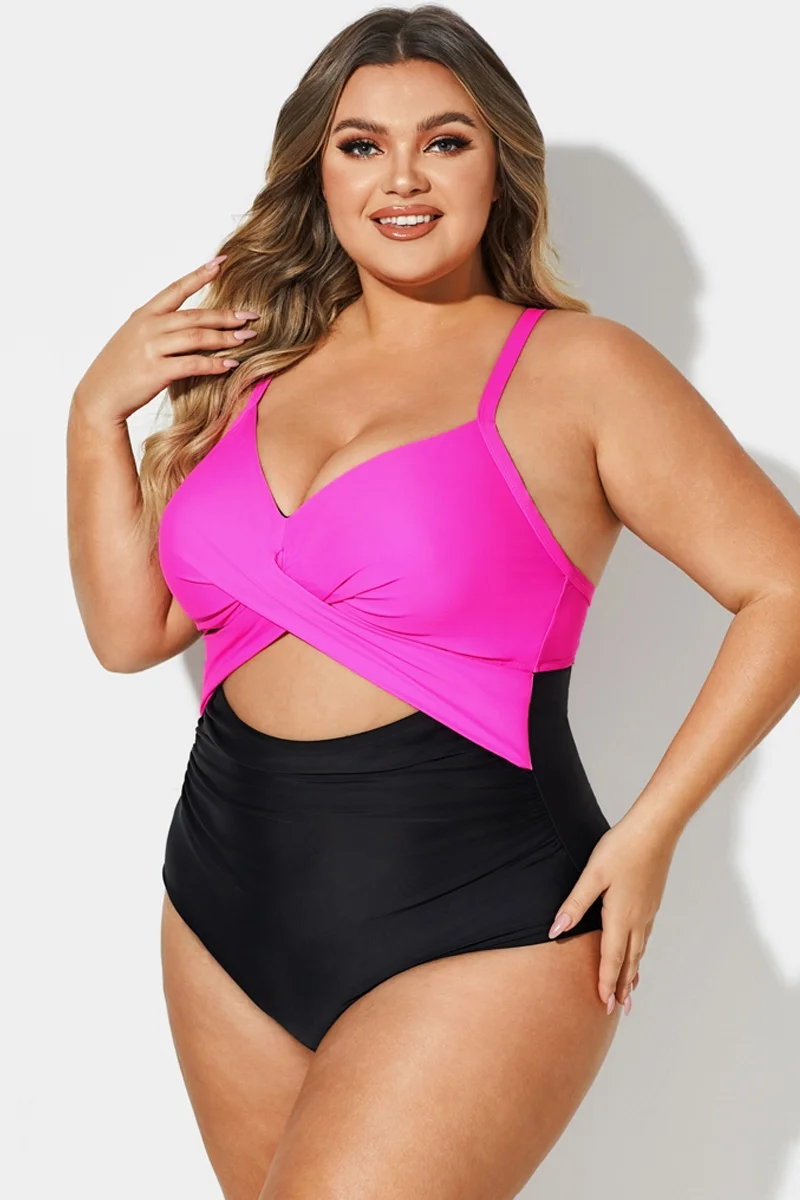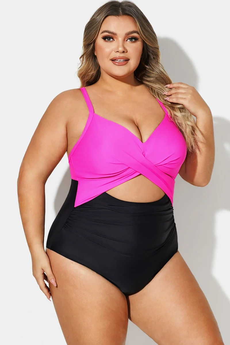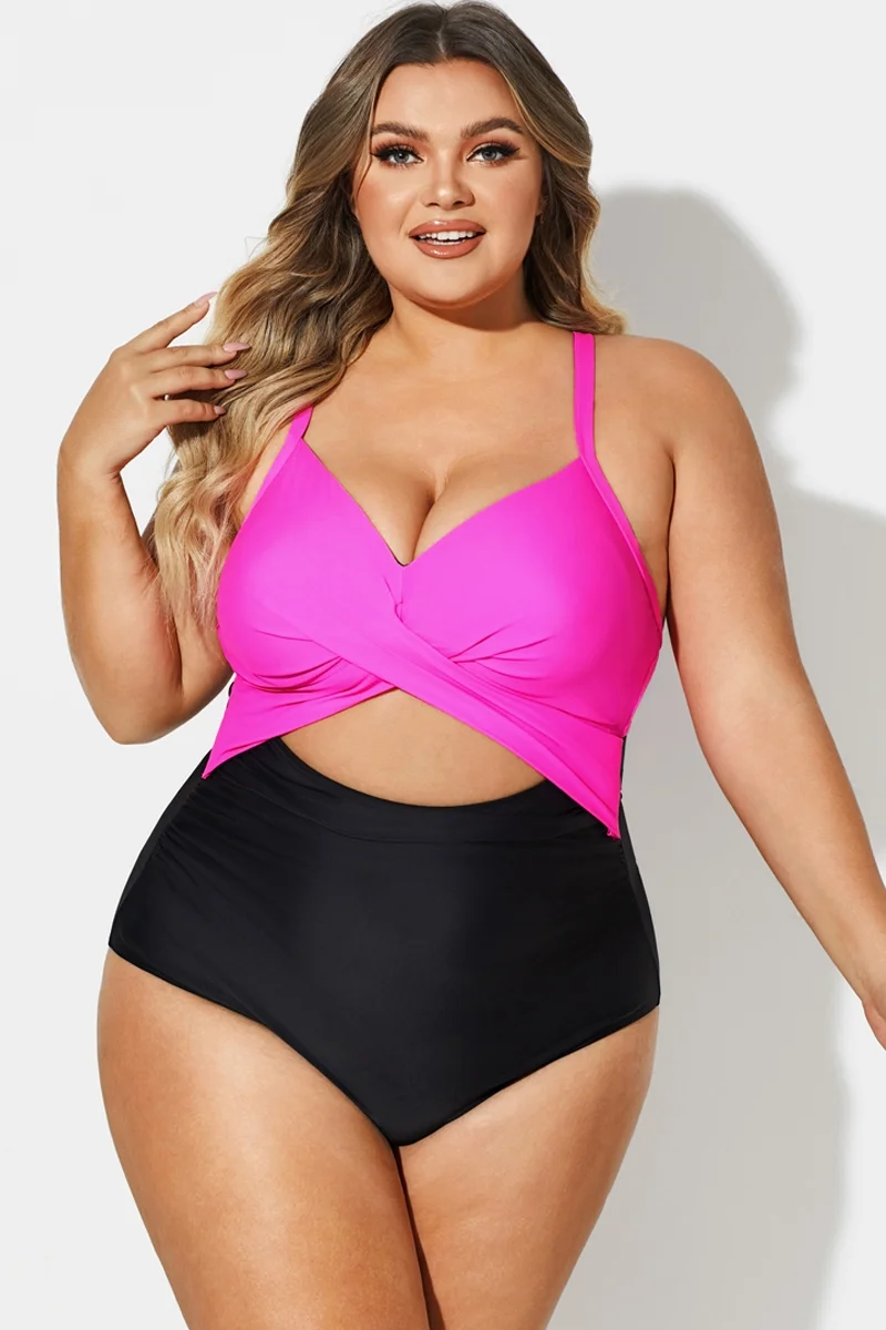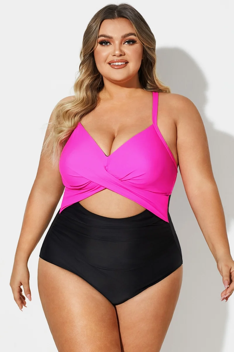 Plus Size Crossback Cutout One Piece Swimsuit - PremCurve