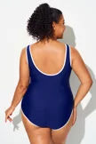 Plus Size Dark Blue Elegant V-Neck One Piece Swimsuit
