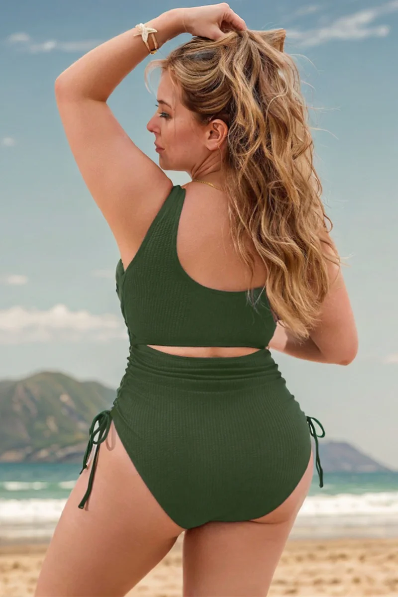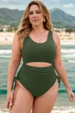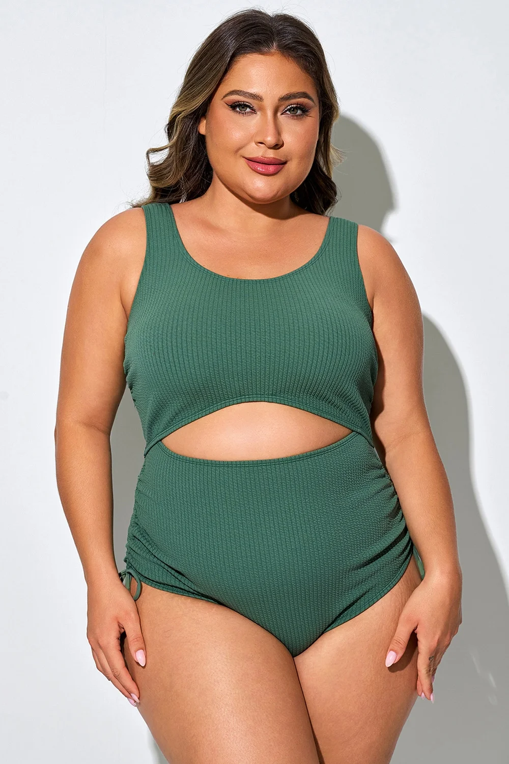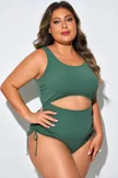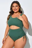 Plus Size Dark Green Front & Back Cutout Swimsuit - PremCurve