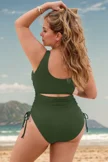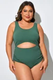 Plus Size Dark Green Front & Back Cutout Swimsuit