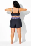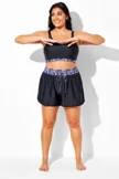 Plus Size Floral Colorblock Lace Up Shorts - PremCurve