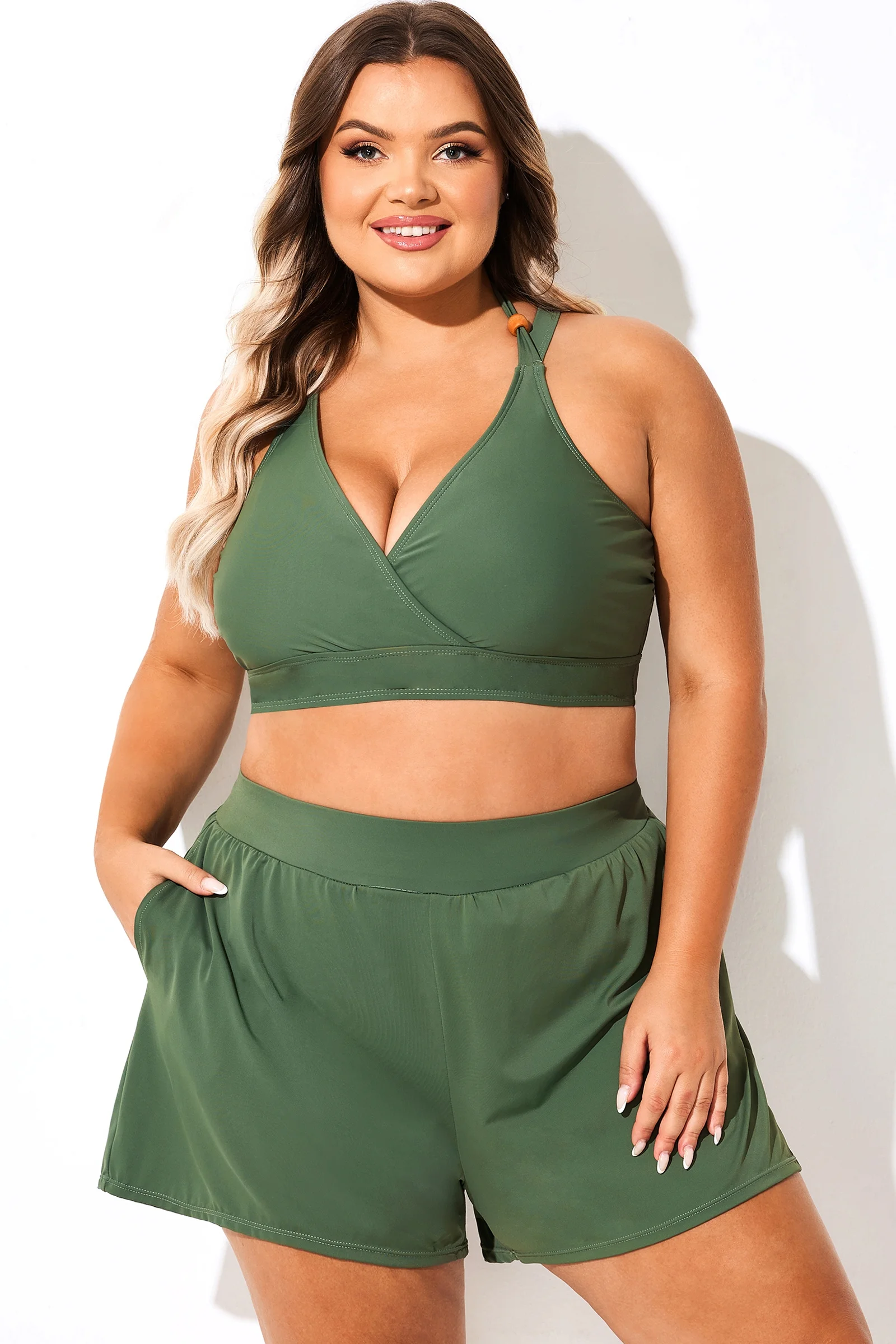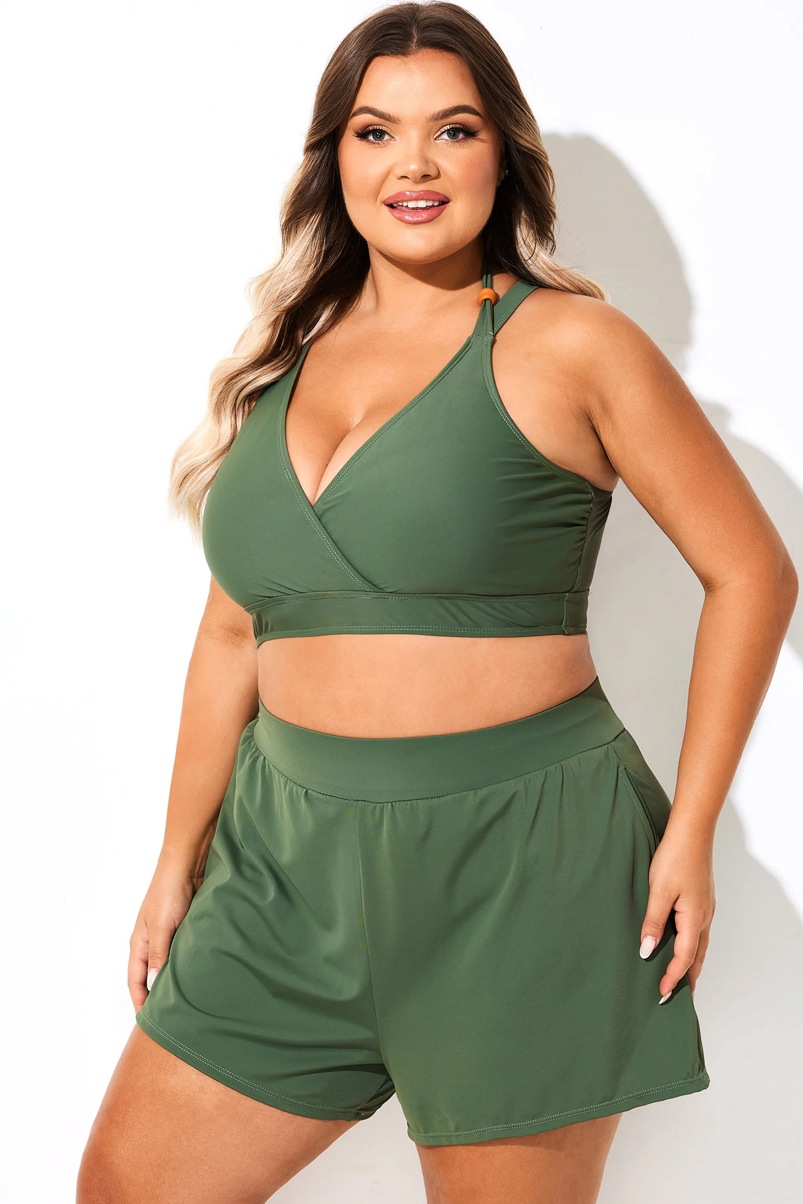 The bikini top feels supportive enough for me to move around comfortably. The crossback detail adds a nice touch compared to plain styles. The stitching looks neat and tidy. I wasn’t sure about the green but it suits my skin tone nicely. Would order again.Jade Scott1 -
