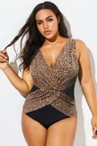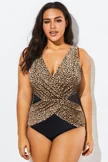 Plus Size Leopard Print V-Neck One Piece Swimsuit  - PremCurve